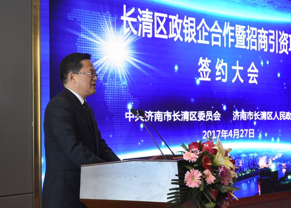 2017年4月27日,濟南市長清區(qū)政銀企戰(zhàn)略合作暨招商引資項目簽約大會在長清區(qū)舉行.