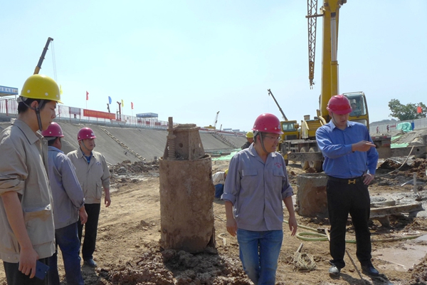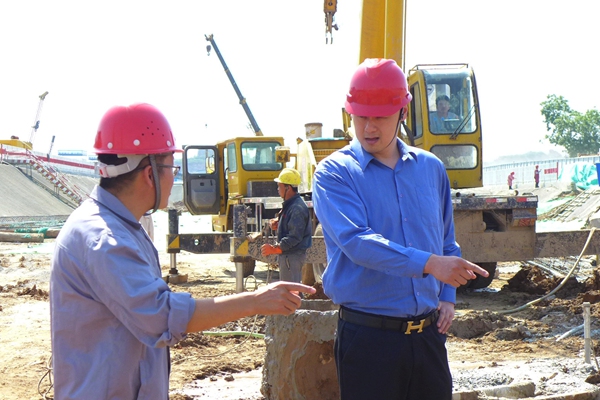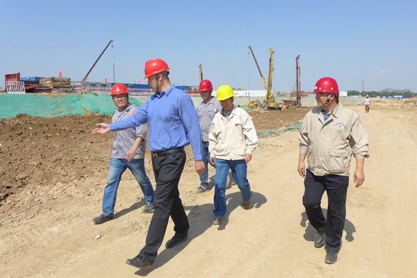 公司董事長帶隊(duì)到軌道交通R1樁基工地檢查工作