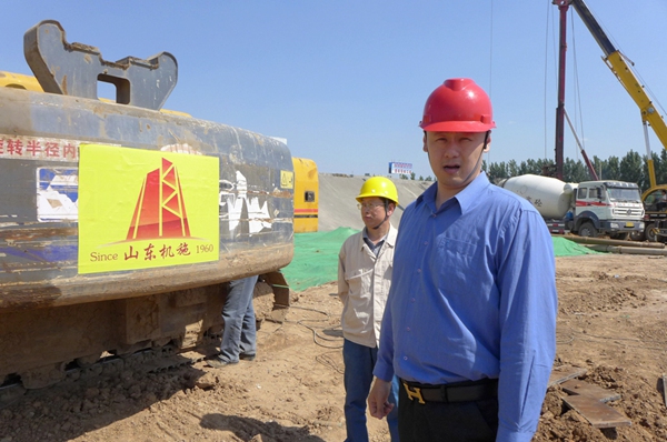 董事長對每臺施工機(jī)械上都醒目展示著企業(yè)LOGO提出表揚(yáng):工程干到哪里、企業(yè)宣傳就到那里!
