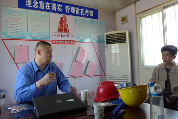 項(xiàng)目經(jīng)理薛永恒向董事長匯報(bào)施工情況