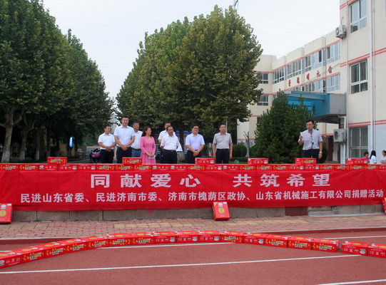 2018年9月13日下午16:00時許,由槐蔭區(qū)政協(xié)、民進(jìn)山東省委、民進(jìn)濟(jì)南市委、山東省機械施工有限公司聯(lián)合主辦,山東省機械施工有限公司承辦的“同獻(xiàn)愛心,共筑希望”的愛心捐贈活動,在濟(jì)南市特殊教育中心隆重舉行,以體現(xiàn)社會各界人士對殘障少年兒童的關(guān)愛及企業(yè)的社會責(zé)任。參加此次捐贈活動的領(lǐng)導(dǎo)有市人大常委、民進(jìn)濟(jì)南市委副主委劉海萍、槐蔭區(qū)政協(xié)主席徐賓、民進(jìn)山東省委組織部部長姜軍鋒、民進(jìn)濟(jì)南市委辦公室主任王洪偉、山東省機械施工有限公司董事長沈繽、山東機施公司財務(wù)總監(jiān)徐占全、副總經(jīng)理楊明、劉志勛、工會主席賈學(xué)偉。濟(jì)南特殊教育中心書記韓坤及在校師生共300余人參加了此次捐贈活動。