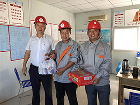 2018924日,中國傳統節(jié)日“中秋節(jié)”,節(jié)日期間公司沈繽董事長及領導班子各領導成員,分赴各個施工一線現場,慰問節(jié)日期間仍然堅守崗位的一線員工,給職工們送去了祝福、送去了關愛及節(jié)日慰問品,各位領導與現場一線員工同吃、同樂、共同度過了一個歡樂且十分有意義的“歡樂中秋”!