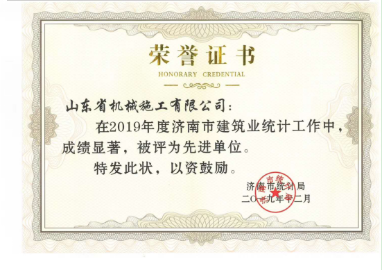山東省機(jī)械施工有限公司被評(píng)為濟(jì)南市建筑業(yè)統(tǒng)計(jì)工作先進(jìn)單位