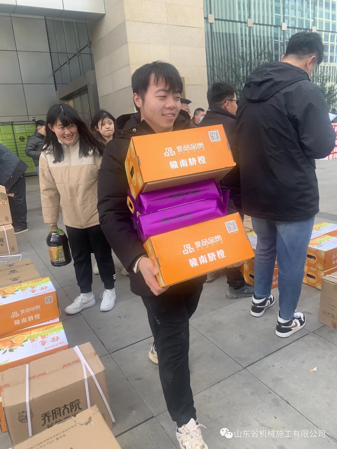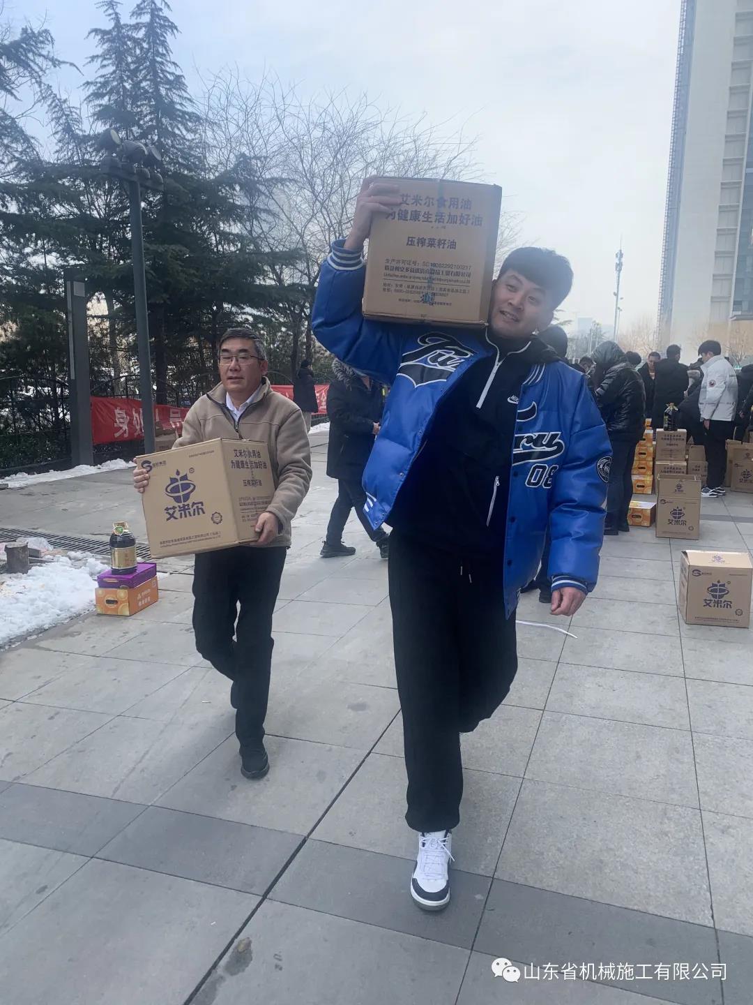 新春臨近,為感謝全體員工一年來的努力付出、關(guān)心職工生活、讓員工開開心度過一個歡樂、祥和的春節(jié),1月26日上午,山東省機械施工有限公司為每位員工發(fā)放了豐富的春節(jié)年貨,沉甸甸的年貨給全體員工帶來了新年的氣息。